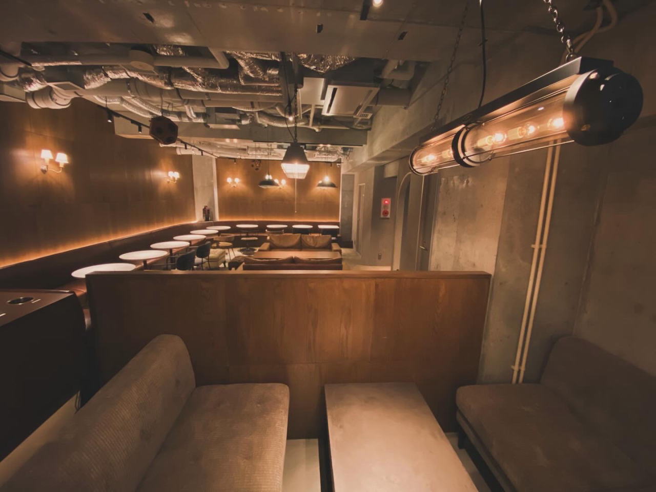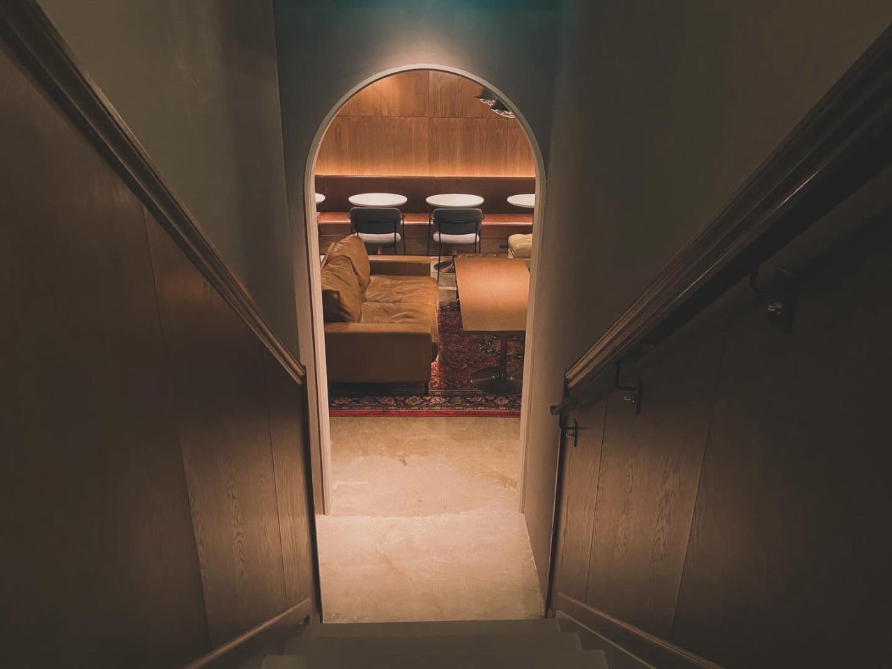 地下に降りると薄明かりの秘密基地のような空間