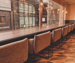 船旅中の憩いの場をイメージした空間でカフェタイムを楽しめます